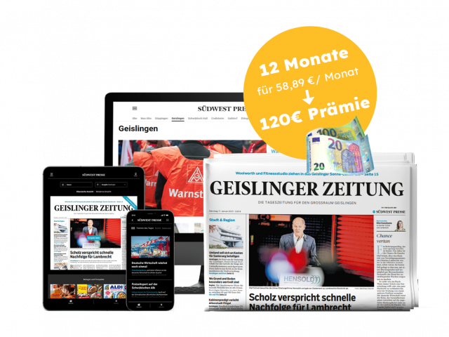 G´scheid g´spart mit dem Geislingen Abo Jetzt ´s Geislingen Abo sichern und 6 Monate zum Preis für 4 lesen und damit bis zu 100 Euro sparen.