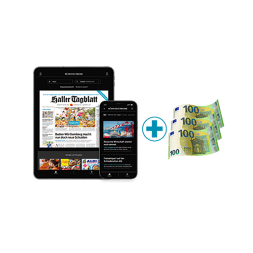 Digitale Zeitung & Gedruckte Zeitung am Wochenende + 300€ Geldprämie für nur 10,48 € pro Woche I 4 Monate Mindestlaufzeit