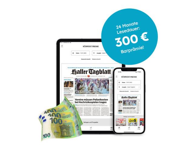 Komplettpaket Gedruckte und digitale Zeitung inkl. SWPplus | 13,60 € wtl. | 24 Monate mit 300 € Prämie