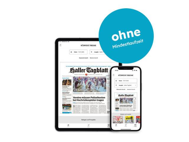 Digitale Zeitung + WE E-Paper inkl. SWPplus + Fr, Sa, Mo gedruckt | 9,79 € wtl. | Ohne Verpflichtung