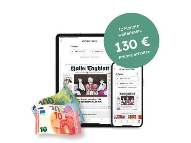 6 Wochen für nur 25 € Zustellung frei Haus: Ihr HALLER TAGBLATT 6× wöchentlich gedruckt.