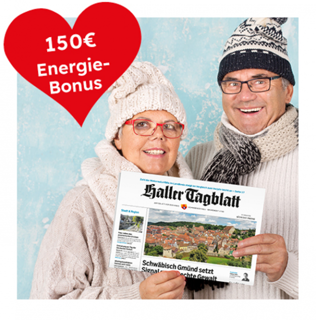 Bei Auswahl "gedruckte Zeitung täglich" erhöht sich der Bonus von 120 € auf 150 € Ihren Energie-Bonus: 150 € auf Ihr Konto