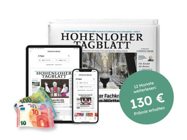 6 Wochen für nur 25 € Zustellung frei Haus: Ihr HOHENLOHER TAGBLATT 6× wöchentlich gedruckt.