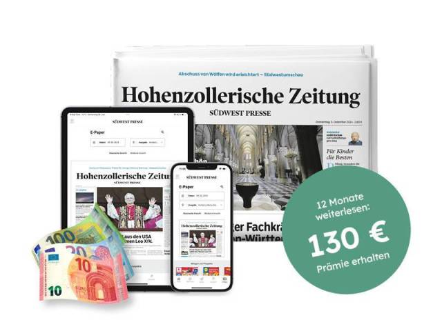 6 Wochen für nur 25 € Zustellung frei Haus: Ihre HOHENZOLLERISCHE ZEITUNG 6× wöchentlich gedruckt.