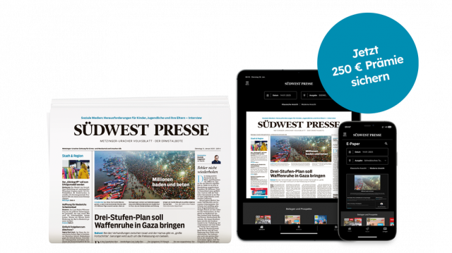 Lesen Sie jetzt die SÜDWEST PRESSE für die Dauer von 12 oder 24 Monaten und sichern Sie sich Ihre Prämie.