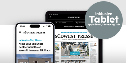 Dieses Angebot ist pro Haushalt nur einmal gültig und darf keinen bestehenden Auftrag der Digitalen Zeitung (E-Paper & SWPplus) ablösen oder mit einem bestehenden Auftrag verrechnet werden.