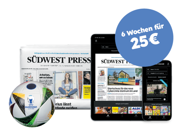 Diese Teilnahmebedingungen beziehen sich auf das Gewinnspiel der Neue Pressegesellschaft mbH & Co. KG. Die Teilnahme am Gewinnspiel richtet sich ausschließlich nach diesen Teilnahmebedingungen. Jeder, der im Aktionszeitraum ein EM-Sportabo bezieht oder sich dafür entscheidet, kommt automatisch in den Los-Topf. Zu gewinnen gibt es einen von fünf EM-Spielbällen. Das Gewinnspiel läuft vom 08.06. – 14.07.2024. Die Gewinner werden am 16.07.2024 durch ein Zufallsprinzip bestimmt. Die Gewinne erhalten Sie auf dem Postweg, sofern Sie uns im Gewinnfalle Ihre postalische Anschrift entweder mitgeteilt haben oder nach Aufforderung binnen 14 Tagen mitteilen möchten. Der Erwerb von Produkten oder Dienstleistungen beeinträchtigt nicht den Ausgang des Gewinnspiels. Die Teilnahme ist kostenlos und nur für volljährige Personen erlaubt. Mitarbeiter der Neue Pressegesellschaft mbH & Co. KG und deren verbundener Unternehmen und oder Tochterunternehmen dürfen nicht teilnehmen. Eine Barauszahlung ist nicht möglich. Weitere Informationen, insbesondere zum Datenschutz unter: swp.de/datenschutz. Der Rechtsweg ist im Hinblick auf die Ziehung der Gewinner und die etwaige Beurteilung der eingereichten Gewinnspielbeiträge ausgeschlossen. |