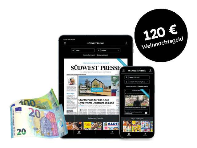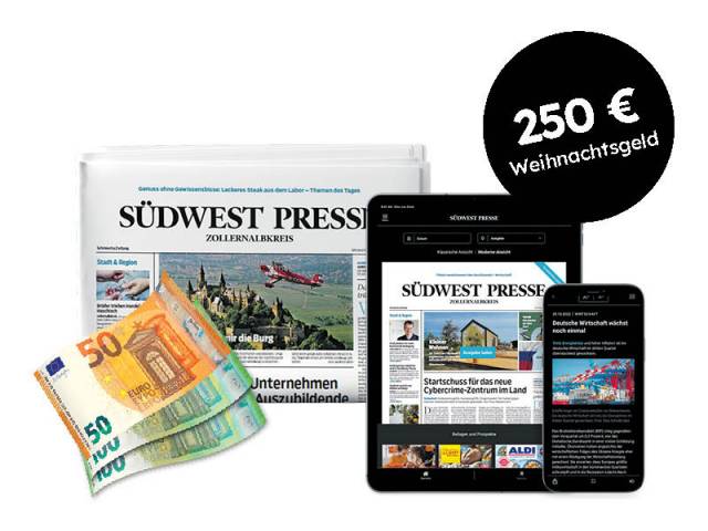 Jetzt 250€ Weihnachtsgeld sichern! Entdecken Sie mit Ihrer SÜDWEST PRESSE die schönsten Seiten zu Weihnachten und und sichern Sie sich bis zu 250€ Weihnachtsgeld.Jetzt sichern