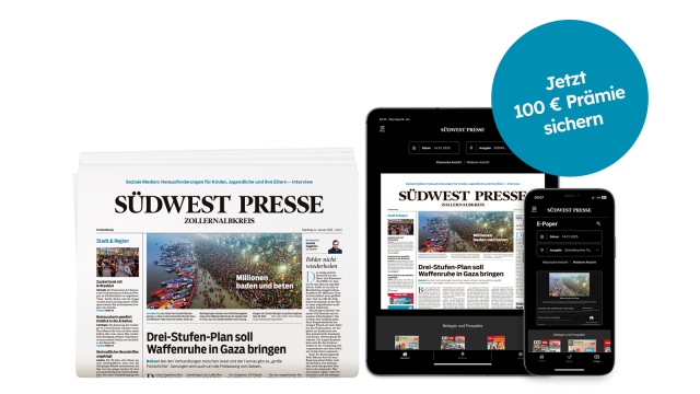 Lesen Sie jetzt die SÜDWEST PRESSE für die Dauer von 12 oder 24 Monaten und sichern Sie sich Ihre Prämie.